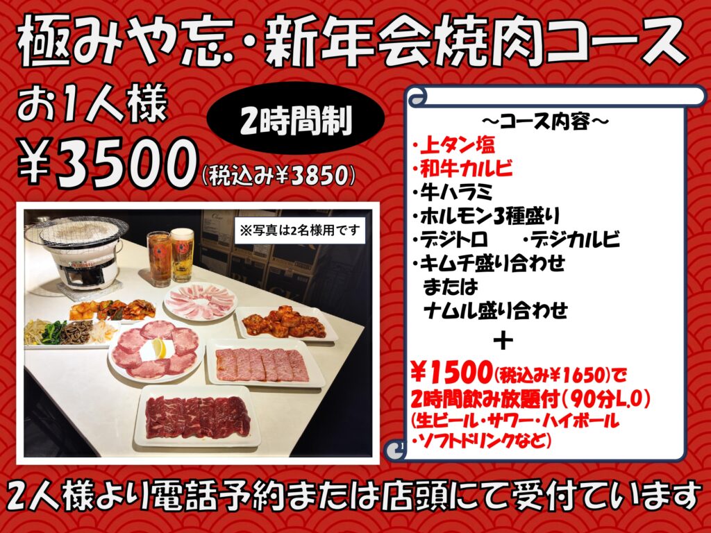 ↑↑↑↑↑忘・新年会焼肉コース電話・店頭にて予約受付ております!!↑↑↑↑↑